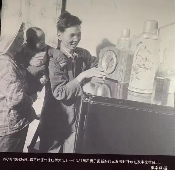 在展览中,他印象最深的一张照片是苏州河上的船。“我们小时候苏州河上都是‘篷篷船’,苏州河的水特别臭,我有同学曾经就住在河滨大楼,一开窗就一股味道,他忍无可忍搬走了。现在的苏州河完全是另外一个样子。”“还有一张‘三五牌台钟’的照片,我们当时结婚讲究‘三机一响’,在物质匮乏的年代,想要一张三五牌台钟的票子,需要在单位排几年队。比较之下,如今生活水平和过去不能比了。”