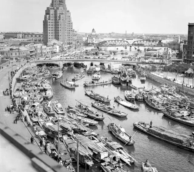 1961年3月23日,苏州河上繁忙的积肥送肥