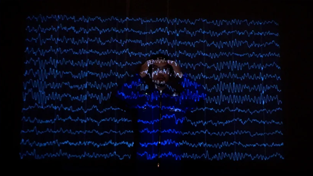 脑波耳机从体验者的大脑中读取信号,并通过蓝牙将信号以数字的方式传输到计算机。Max/MSP是计算机中的软件,将信号从数字转换为音高和声音的长度。声音将通过卫星播放,卫星由钢和铝制成。