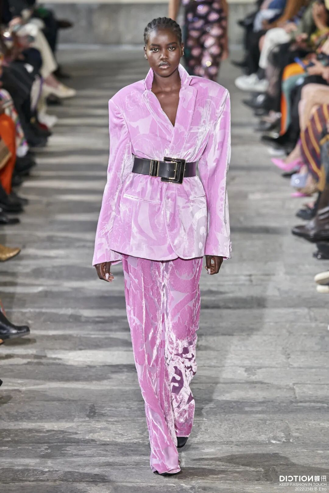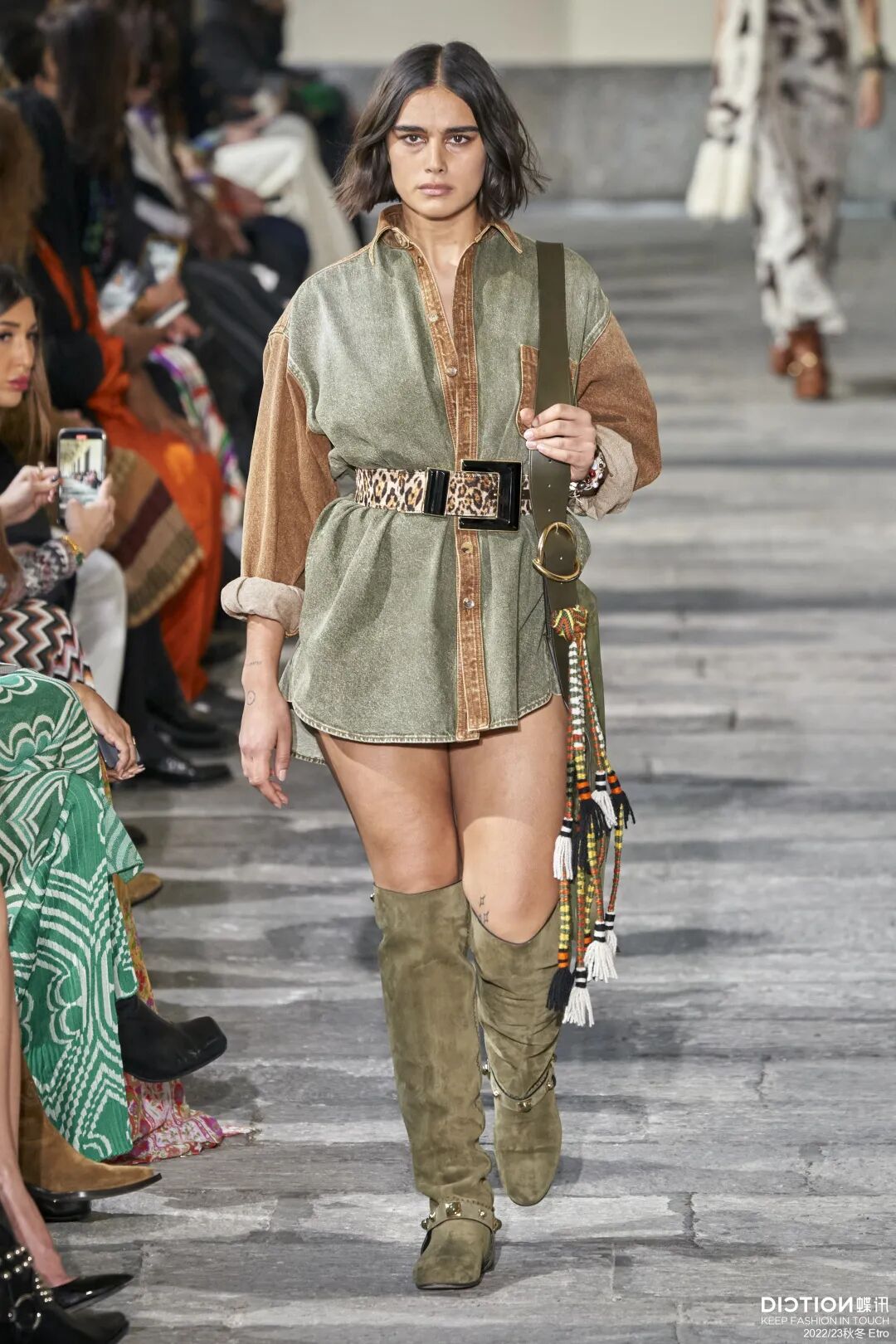 Etro 2022秋冬女装系列受品牌传统以及 70 年代嬉皮士和波西米亚风格的启发,该季女装创意总监 Veronica Etro 将 Etro 的精神与装饰元素相结合,活力新奇的图案变化出新的纹理混合体Etro REMIX,肯定了冲动且保留游牧特质的原始性,也重申了Etro崇尚自由的本质。