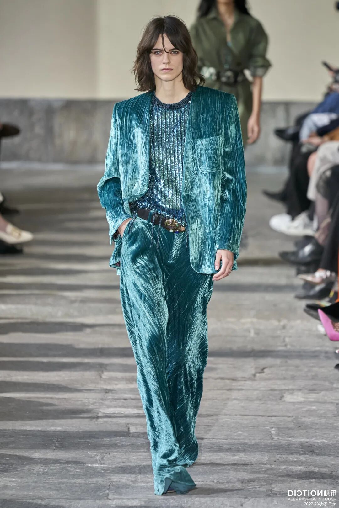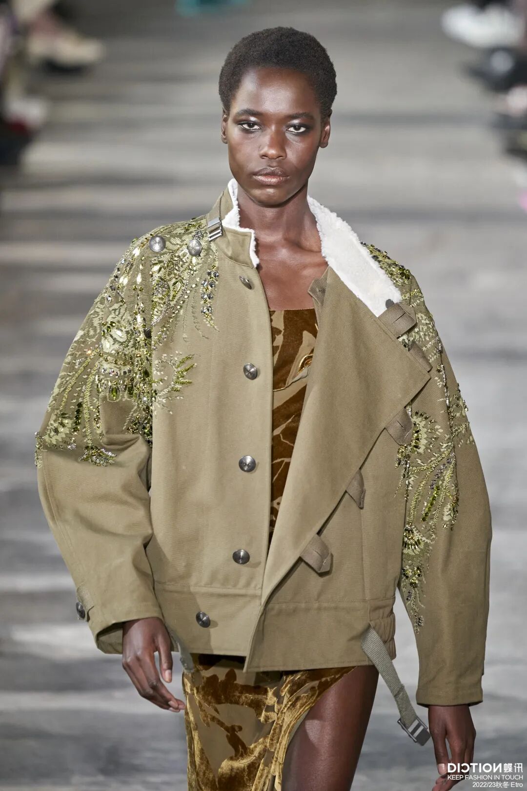 在 Etro 2022秋冬女装系列,女装设计总监 Veronica Etro 将品牌精神与外界元素相结合,以模糊边界的形式再现混凝土森林和自然景观。打破定式,走出舒适区,直面外部世界,培养精神与意识的强健,参与变化的心态非常重要。视角的变化引发观点的自由生长、时刻发生,进而演变为坦率真诚的表达。