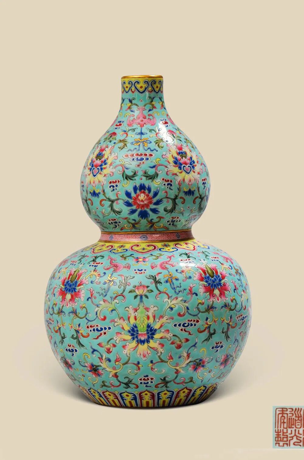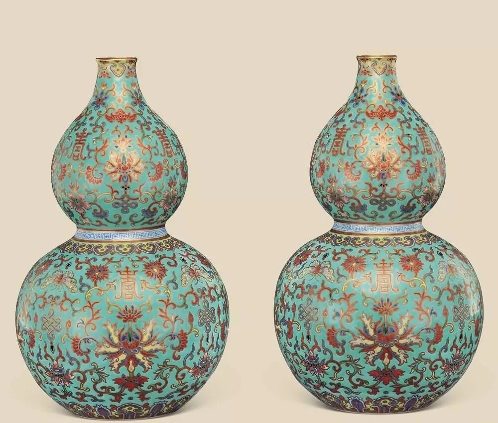 还有清道光松石绿地粉彩缠枝莲寿字葫芦瓶也以1725万成交,让道光瓷成为当时市场的热点。