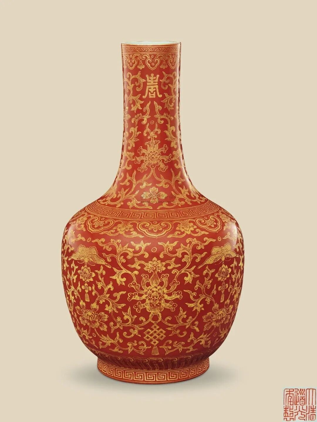 右二 清道光 珊瑚红描金宝相花寿字纹瓶