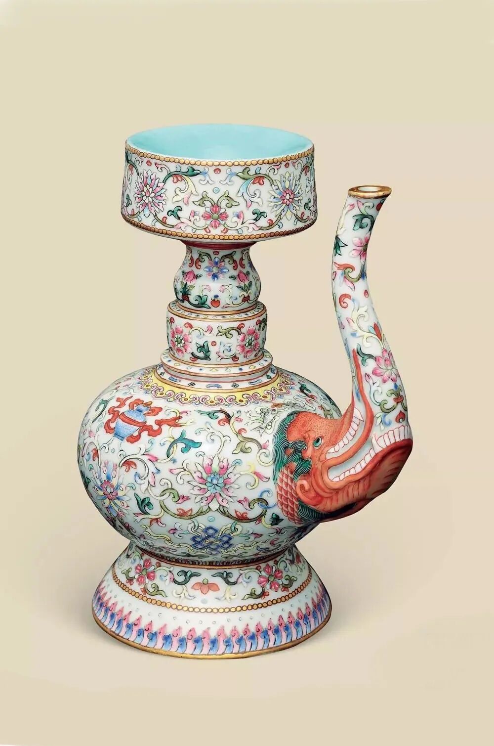 清道光 白地粉彩八吉祥贲巴壶