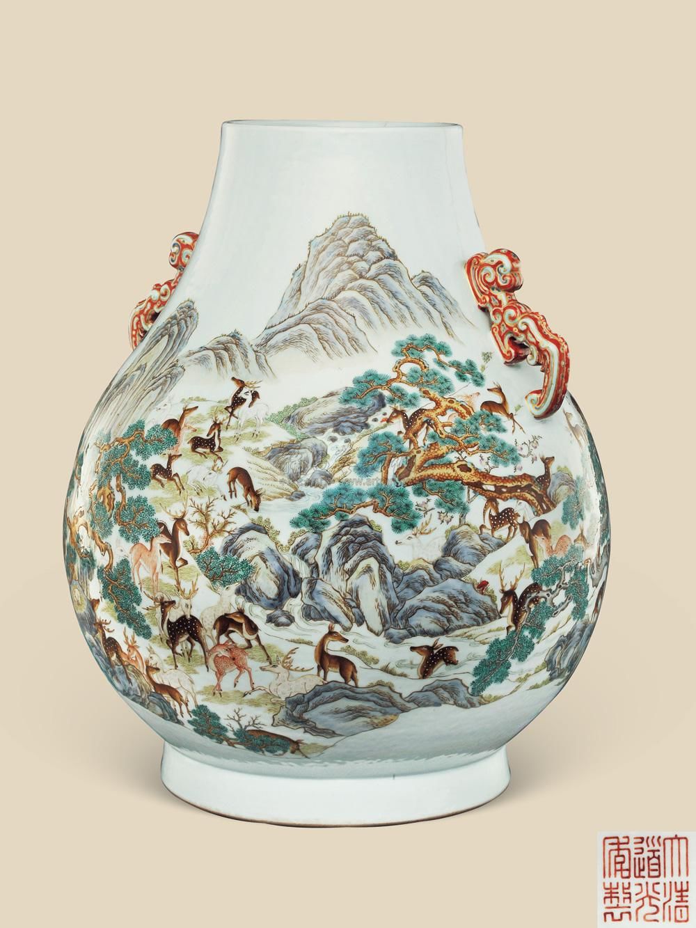 清道光 粉彩百鹿尊