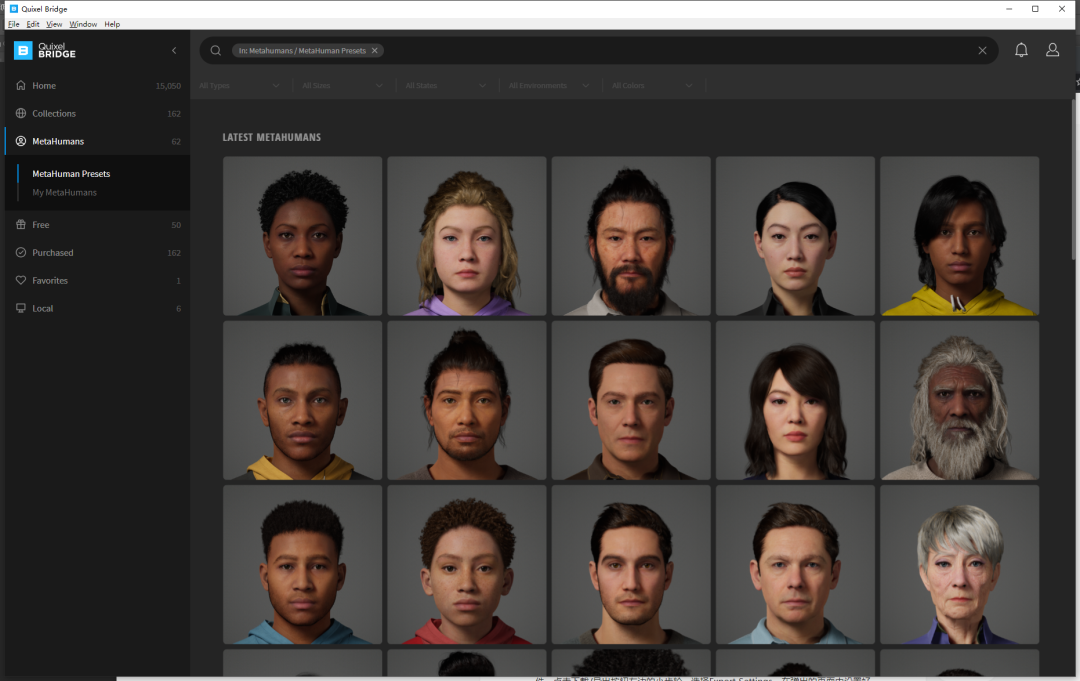 MetaHuman系统界面
