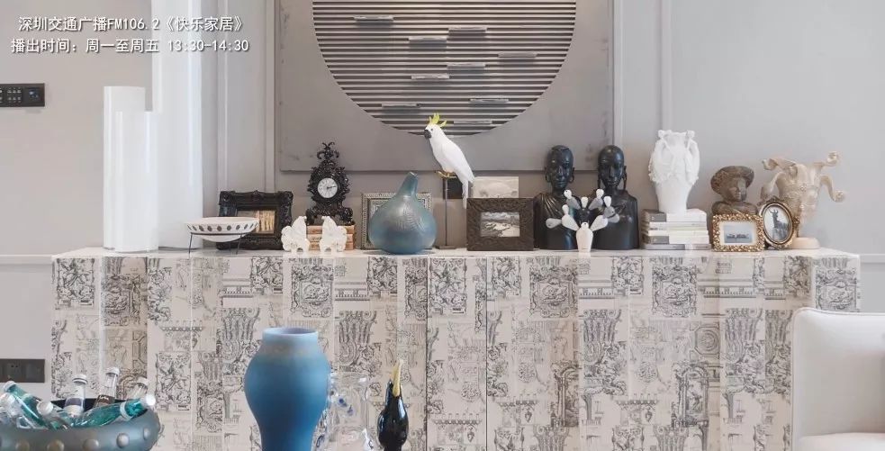 干净的白蓝配色加上艺术品的点缀