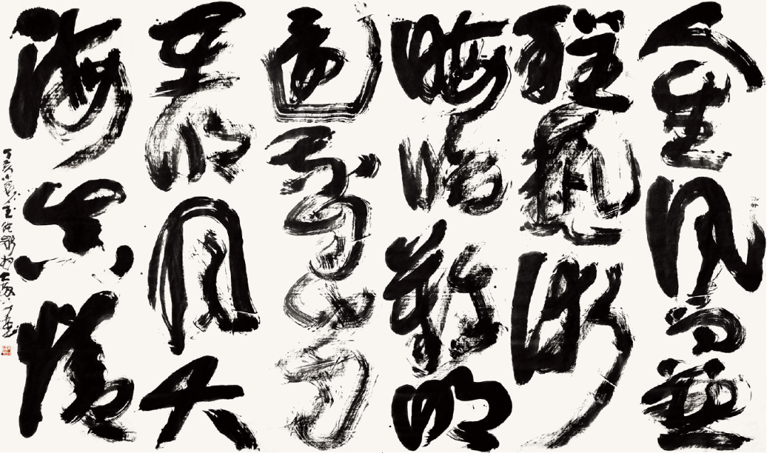 尤其是当代书法创作中那些“百世之上”都没有出现过的作品,它们中的优秀者应是我们这个时代的原创之作;或者以往“百世”有过,但不入古代标准的作品似熟悉而陌生者,这些作品都会使当代人莫名其妙,一下子好像没有准确的术语描述,无法接受眼前的视觉事实。于是,品鉴不得展开、审美中断,大脑里的艺术标准呈现空白。