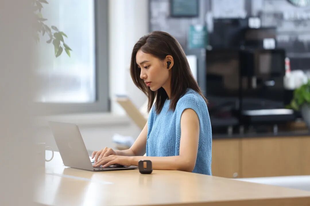 2、「混合降噪」技术能消除99%环境音,身处闹市也像在图书馆一样安静