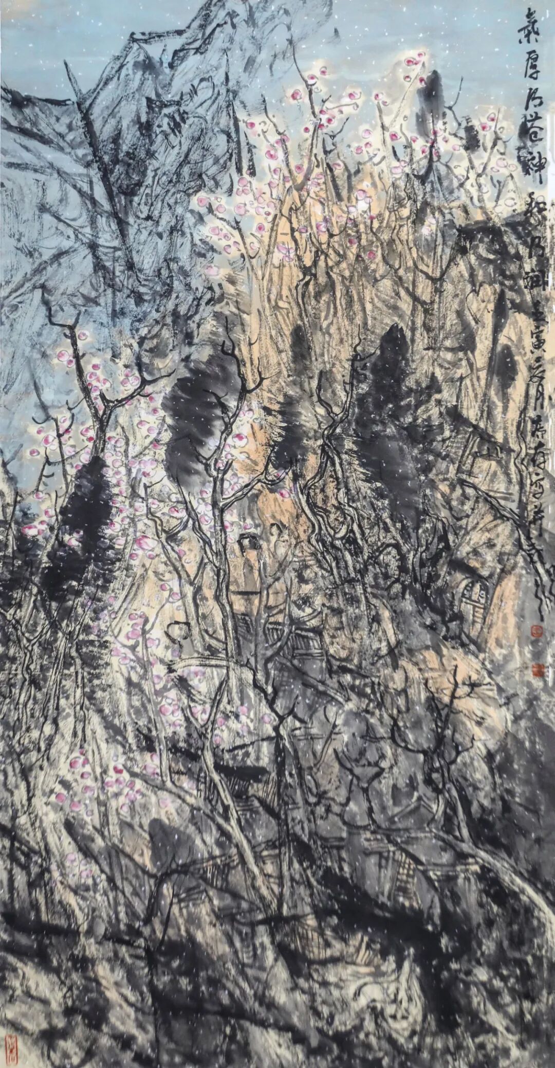 2005年,王广存考入中国国家画院龙瑞工作室,眼界大开,多年蕴积,在导师的开启下勃勃生发,画面气象日新月异。其所创作之陇南山水系列,较前有了崭新的面貌,千崖万壑,厚重清苍,云霞流泉,迭宕起伏,笔墨也更趋整体性的劲健与浑然。虽尚无太强的个性化特征,但能咸归于中国画学之正途,得中正中和之气象。