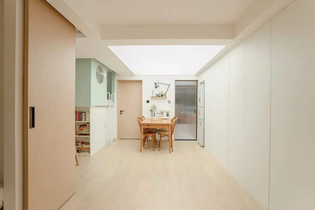 充分利用了主卧与厨房之间的空间,走道变餐厅。足以满足一家五口人同时用餐。