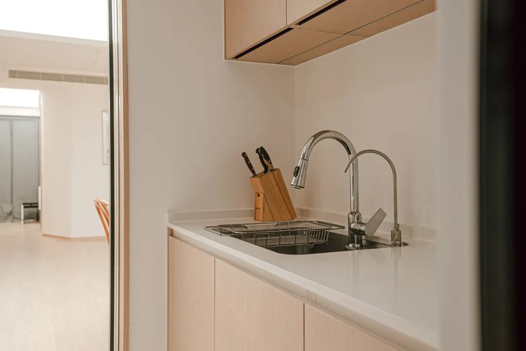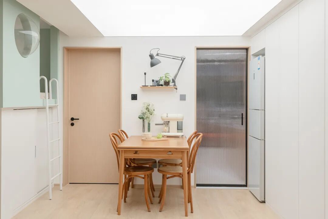4.拆除了原厨房的非承重墙,借用部分主卧空间实现了功能布局更合理的餐厨空间。
