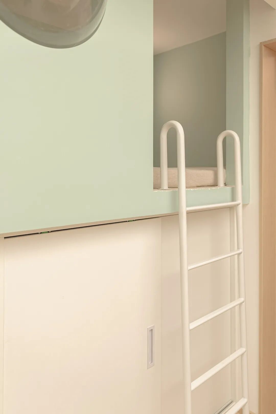 老人房一侧紧挨着的就是儿童房。儿童房充分利用了垂直空间,打造了上睡眠+下储物+学习区的全面设置。