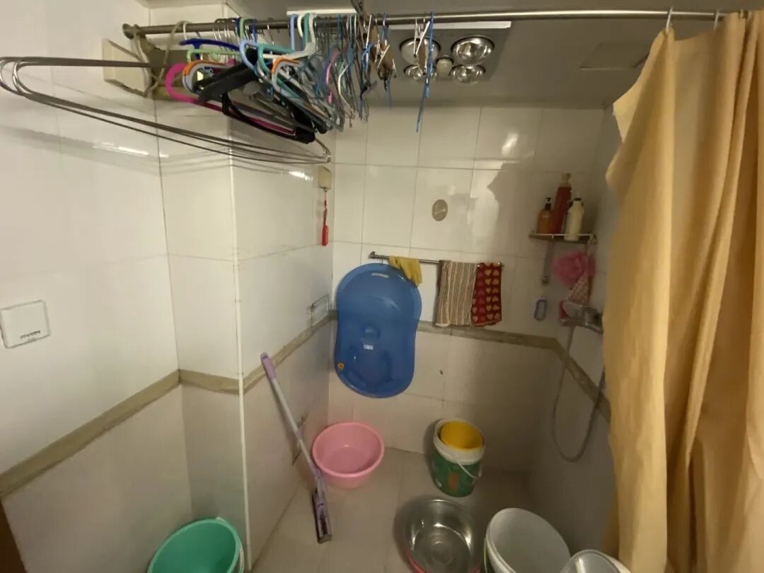 原本的卫生间没有干湿分区,所有的功能区包括清洁工具,都堆在一起。5口人同时居住,也经常遇到排队等待的情况发生。