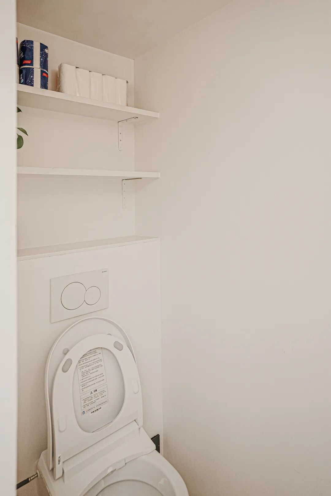 我们借用了部分客厅空间,扩大了卫生间的使用面积,实现了干湿三分离的设计,拥有了独立的洗漱区、马桶区以及淋浴区。