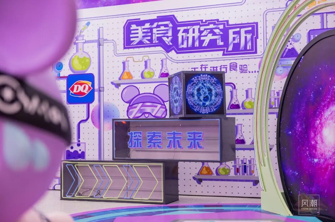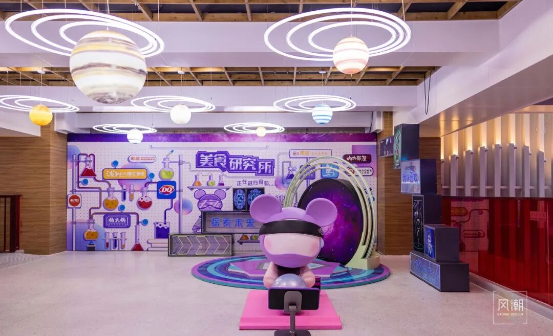 利用楼梯与下方景观座位的空隙,营造一个趣味互动空间。将IP的百变形象,置于旋转面中,形成高颜值的互动打卡墙