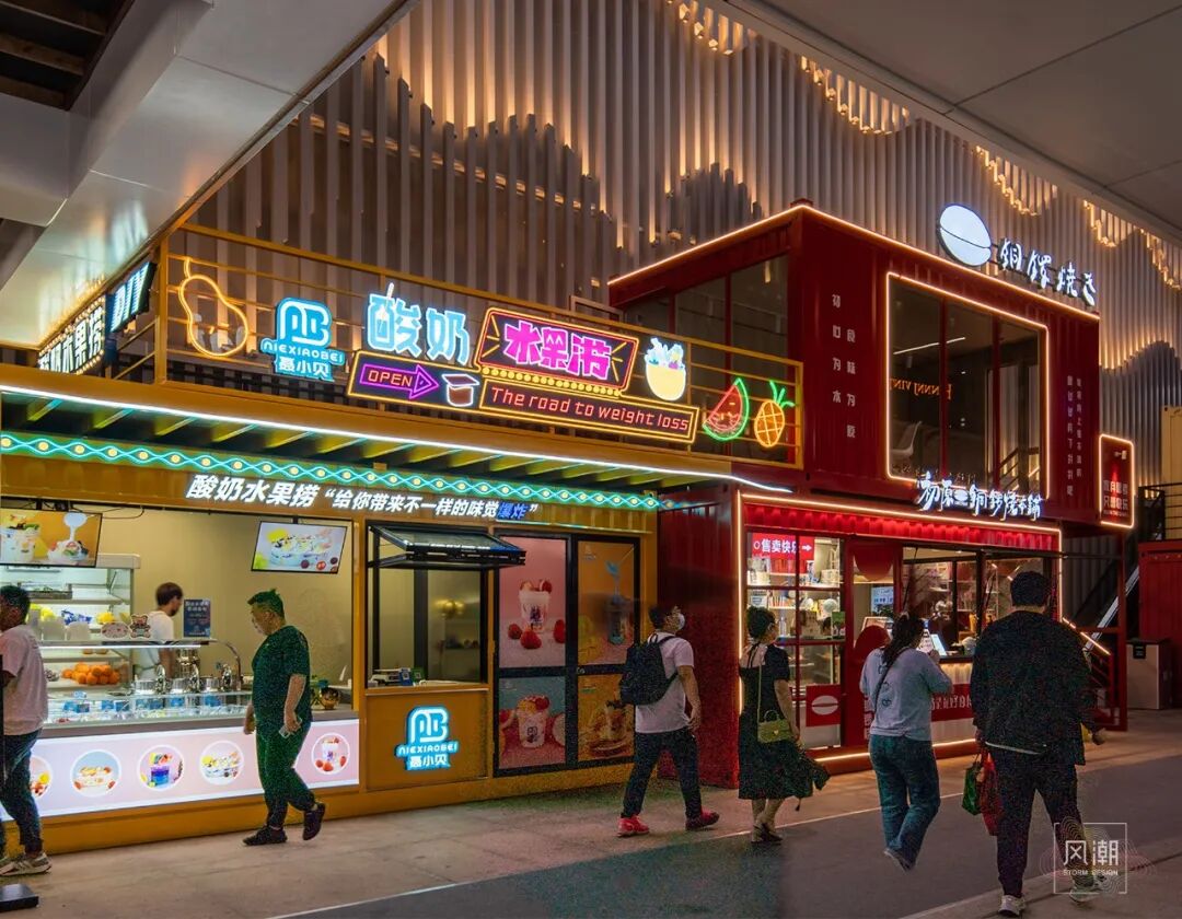 通过特色集装箱形式设置,延长消费者驻留时间,重塑人与人、人与物、人与城市之间的关系,形成具有人情味、高颜值、有故事、重场景的全新城市街区