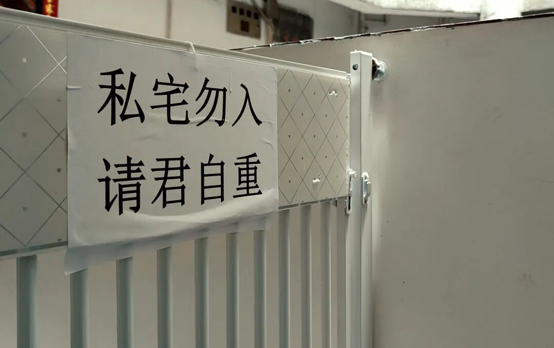 有的则是实打实的空间分隔。这种分隔方式,比较温柔的,是用不锈钢的铁门将楼道围住,并张贴告示进行解释;