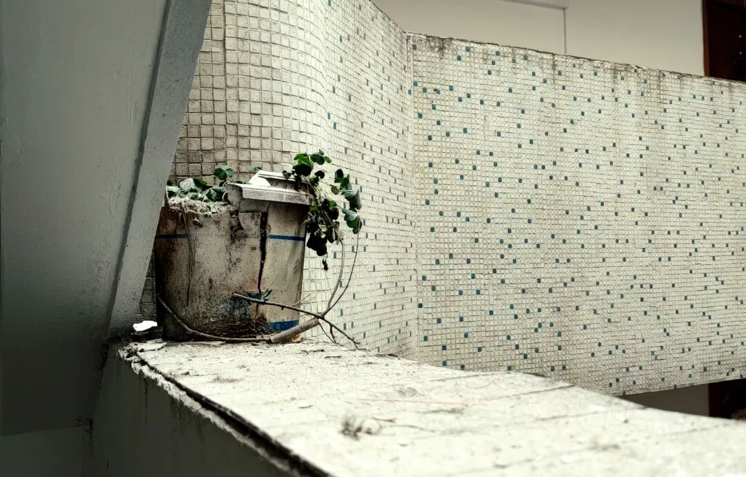我可以很确切的说,所谓的建筑翻新,更多只是对外立面的形象整治而已,而内部除了抹了一层白漆以外,大体上还是二十多年前的模样:马赛克贴面被日复一日的雨水冲刷,留下黑色水痕;