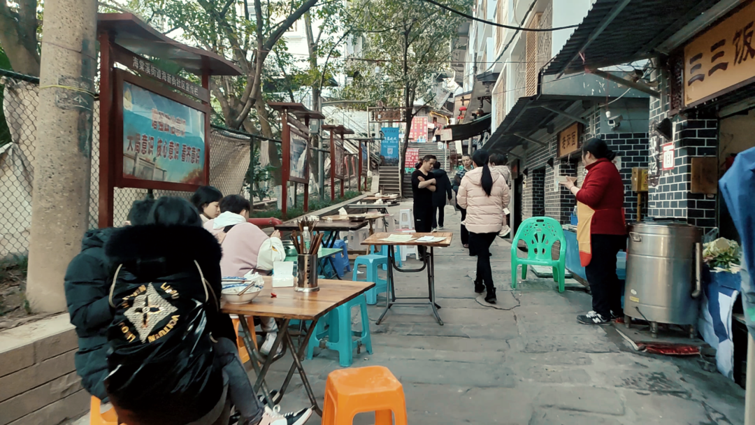 巷子尽头,是最后一段令人窒息的台阶。待我艰难地爬上去,才终于在左侧看到了传说中的海棠溪筒子楼。