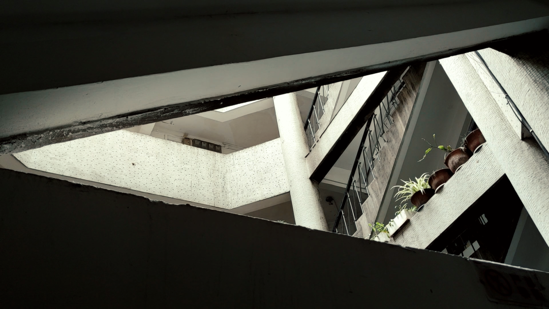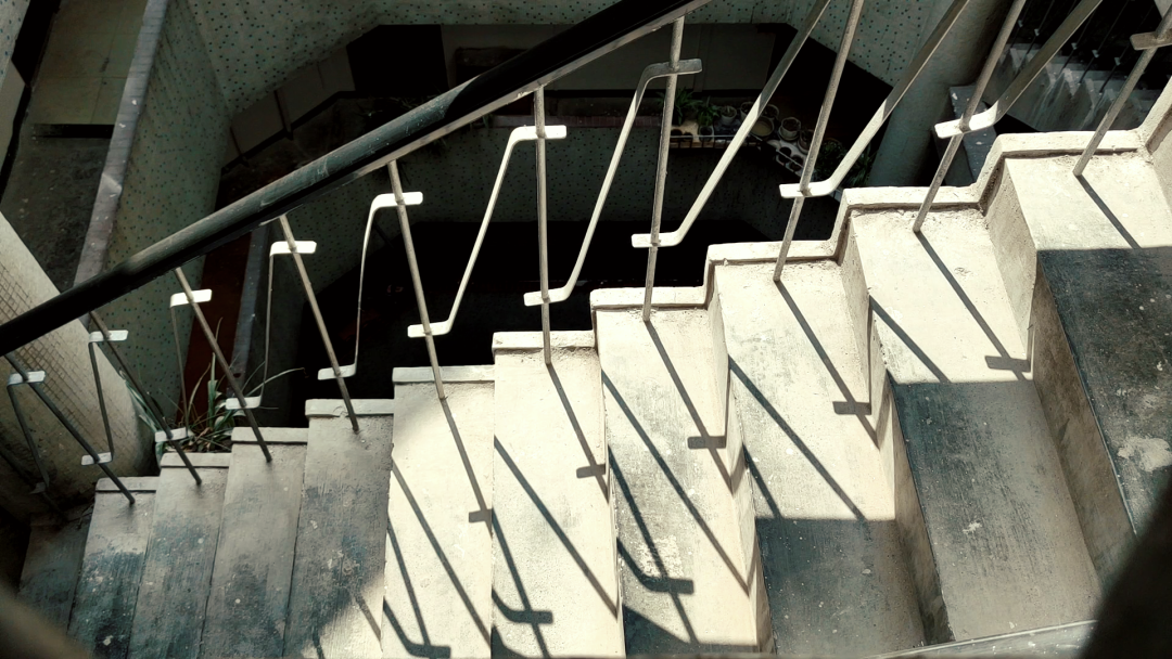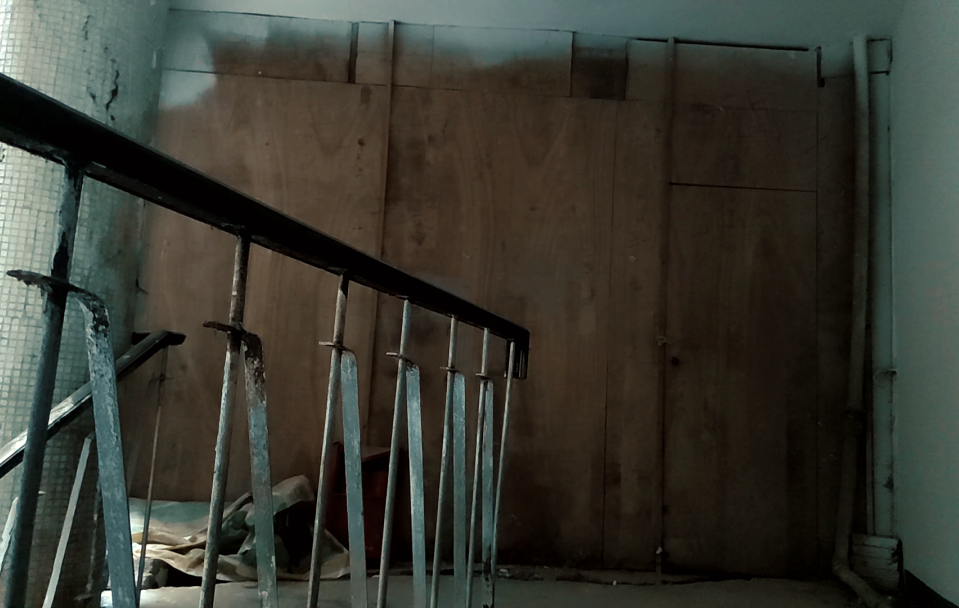 为了将整栋楼都完整地观察一遍,我决定先上到顶层,再逐层向下。当然,一定程度上也是因为我觉得有点阴冷。可不论我怎样捕捉,阳光在筒子楼内留下的痕迹始终十分有限,仿佛楼内有一种看不见的屏障,将大量的光线隔绝在外部。