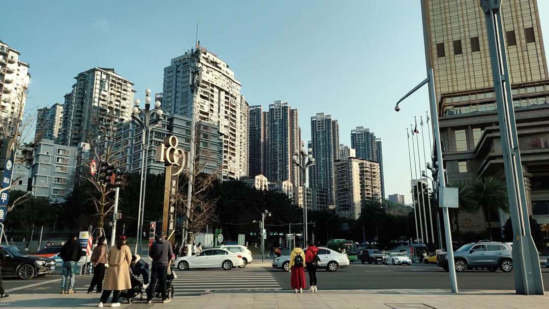 离开了海棠溪筒子楼,旁边的喜来登酒店又一次快乐地出现在眼前。远处的高楼大厦依然耸立,它们象征着城市的现代化改造与经济发展预设的美好与繁荣。
