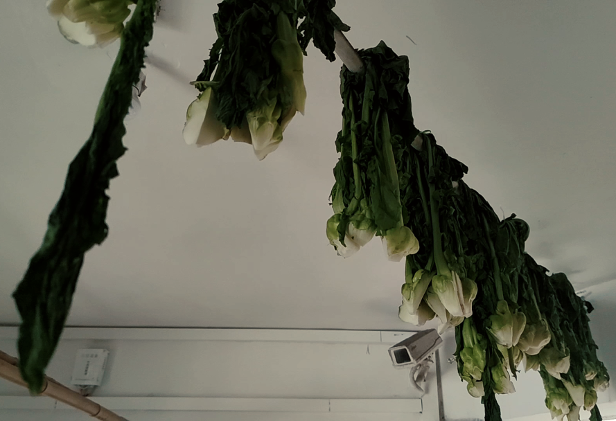不知哪户人家,勇敢地将某种蔬菜张挂在这样的环境中,显得意义不明。
