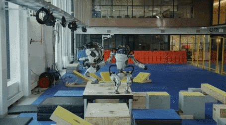 另外Atlas有自己的行为库,Atlas的每个动作都源自使用轨迹优化提前创建的模板。通过创建这些模板库允许研究者向库中添加新的轨迹,从而可以不断为机器人添加新的功能,比如奔跑、后空翻。