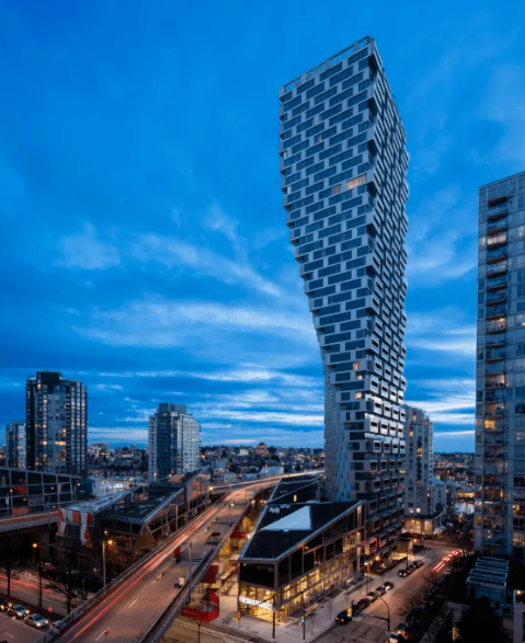 在大桥的下方,我们与温哥华艺术家罗德尼·格雷厄姆合作,建造了一个颠倒艺术画廊,我们称之为“街头艺术的西斯廷教堂”,画廊上方悬挂着罗德尼设计的巨大旋转吊灯。拔地而起的温哥华一号公馆,随着高度的上升而逐渐扩张的造型仿佛一个从瓶子里冒出来的精灵。这种看似超现实的姿态,实际上体现的使由所处环境塑造的高响应式建筑设计思路。