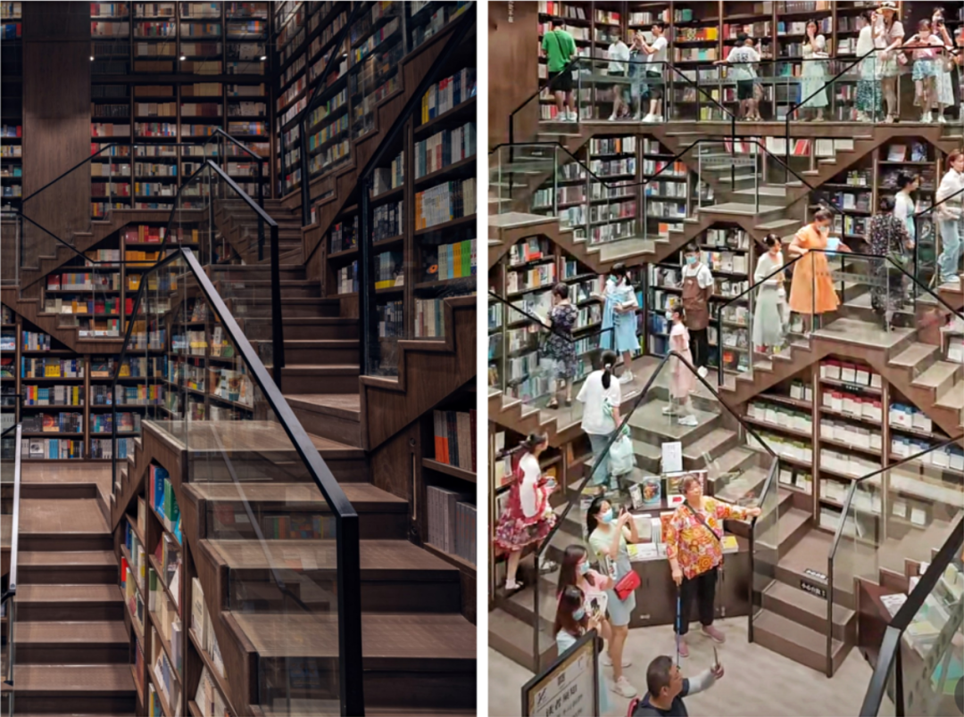 趋向于消费化,重视消费性。更像咖啡馆、星巴克、快餐店、打卡空间,忽略了读书最基本的功能需求。