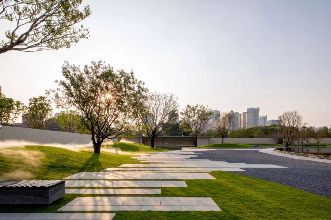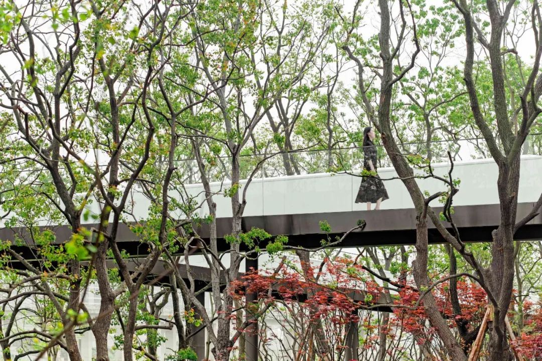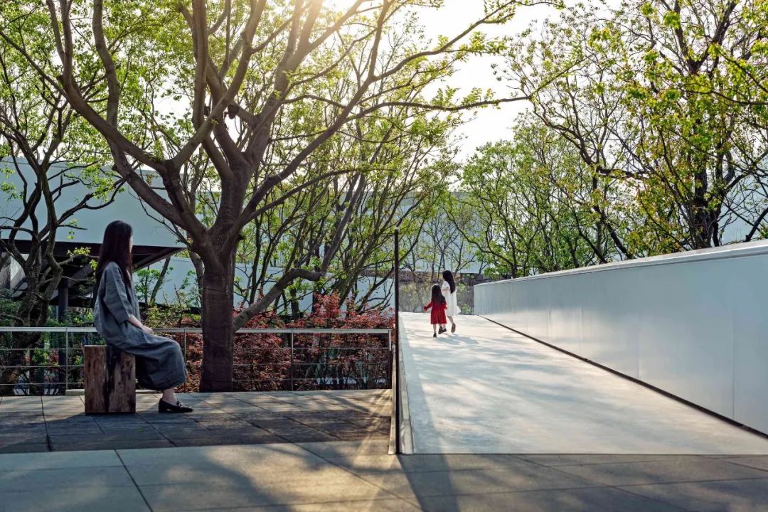 设计团队种了一片乌桕树林,把公园包裹起来,艺术在这里与自然对话,而情感是艺术流动中的血液。在这片立体的时空里,你可以感受到树下微风的凉爽,可以触摸到树梢抚过额头的惬意,还可以感慨穿越枝头后视野的豁然开阔。