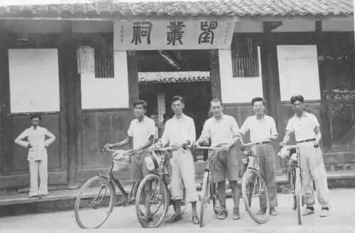 △1941年,汪菊渊(右一)与同事在四川成都望丛祠前合影留念。