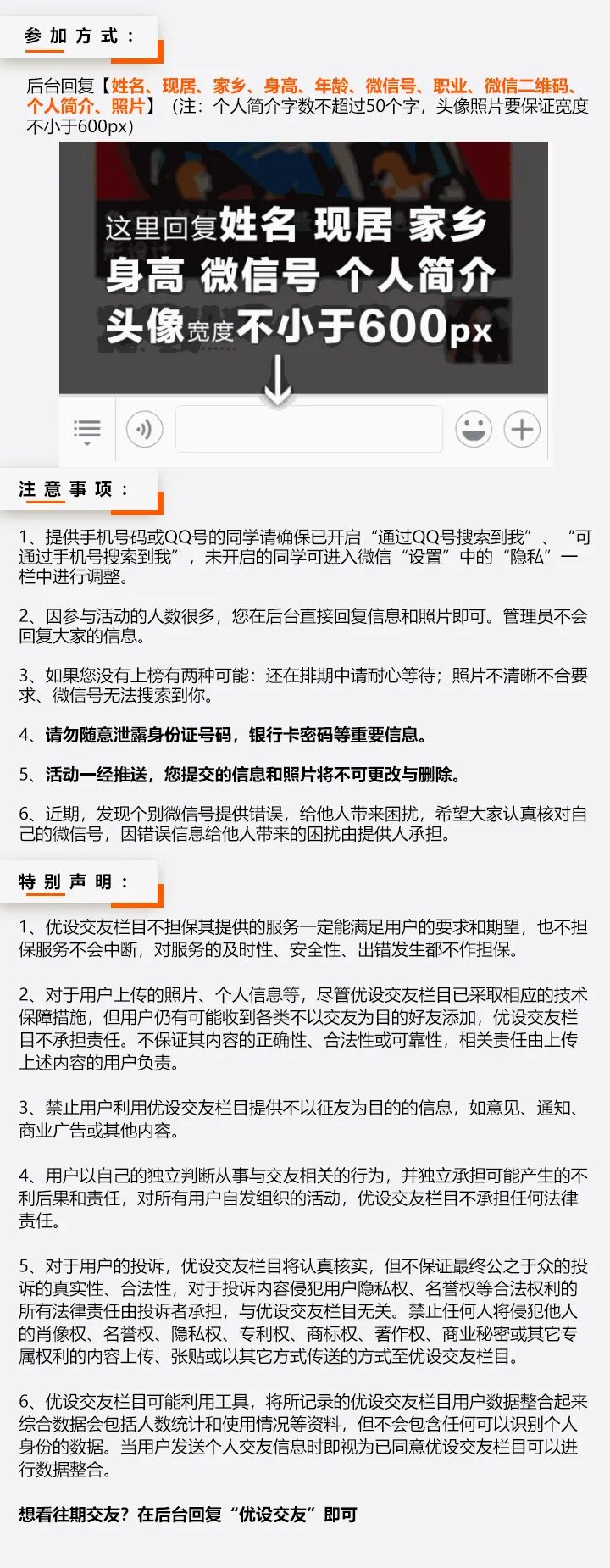 最新文章2023-12-30 网恋到底靠谱吗?同行适合结婚吗?(设计师交友1006期) 艾瑞巴蒂~大家周末好,我是优爱姐,我们好久不见! 话说有多少小伙伴是因为「交友栏目」而关注我们的呢?相信一直关注我们平台的小伙伴都知道,优设公众号的「交友栏目」从2014年起就为设计师小伙伴们提供了专门脱单的栏目。 从开设至今,已经有1千多期了,来投稿上墙的小伙伴也有近1万人了,也有很多小伙伴在爱姐的帮助下成功脱单,甚至步入了婚姻的殿堂。 很多小伙伴可能很疑惑,从今年开始,我们的更新频率变低了,甚至出现了停更的状态,那是因为爱姐一直在和公司的小伙伴们商讨应该如何帮助大家脱单。 从视频时代开始,相信很多人都发现了,以往脱单方式的脱单效率越来越低,投稿上墙的人越来越少,尤其是女生的投稿率更是少的可怜,于是乎,我们也想换一种方式,从视频入手帮助大家快速脱单。 我们开设了专门的视频号,以及《爱姐恋爱指南》系列栏目,目的是能够帮助大家更好更有效率的脱单。 扫码关注视频号 ▼ 第一期我们为大家解答了“网恋究竟靠不靠谱”,可能很多人觉得网恋是不靠谱的,但真的是这样吗?听听爱姐怎么说: 中国有句古话:“物以类聚,人以群分。”大部分人的社会关系都存在于一个有限的圈子里,与自己性格、爱好、价值观相似的人建立友谊,或结成连理。而网上交友却可以帮助我们扩大这个圈子,而随之而来的就是选择范围的扩大。 所以,不靠谱的并不是网恋本身,只要圈子选对了,想要找到与我们相匹配的伴侣也就更加容易了。网恋有没有结果,每个人有每个人的答案,但不管怎么样,只有试过的人才有资格给出答案。 今晚,我们也将迎来改版后「交友栏目」的第一场在线交友直播方式,本期我们邀请到了优设微电台主播小安为大家答疑解惑,大家有交友脱单相关的困惑都可以在直播间和小安聊聊。同时我们也为优设交友会员提供在线相亲的机会,促进脱单! 点击预约不要错过哟 ⬇️ 关注优设的小伙伴都知道,优设交友栏目就是希望帮助更多单身设计师脱单,优设同城交友群在此基础上,为了大家更精准的找到一个城市同样想脱单的异性朋友,所以,能不能成,有没有结果还是要去做了才知道。优设同城交友群欢迎你,来这里脱单吧! 想入交友群或其它问题可加爱姐咨询↓↓↓ 本期交友 ▼ 目前,我们已经从18个同城群新增至了33个同城交友群了,在这里你可以找到更多志同道合的朋友,同一个城市和职业让你们有更多共同的话题。当然,如果没有找到你的城市,你也可以做第一个开创者! 本文来自微信公众号“优秀网页设计”(ID:youshege)。大作社经授权转载,该文观点仅代表作者本人,大作社平台仅提供信息存储空间服务。 TAGS: 交友姐帮助爱脱单 相关文章英赫日报 | 李宁 × 空…米兰时装周的异星来客,用结…米兰“MoLo”移动与物流…西班牙艺术家 Juan d…把小鸟画成美少女,她弃医从…这些鸡蛋包装不只是有趣,设…国产文具又炸了!晨光再造“…七点资讯 |《更衣人偶坠入…AlphaDraw筑绘通「…秦始皇的黑,是你不懂的黑。