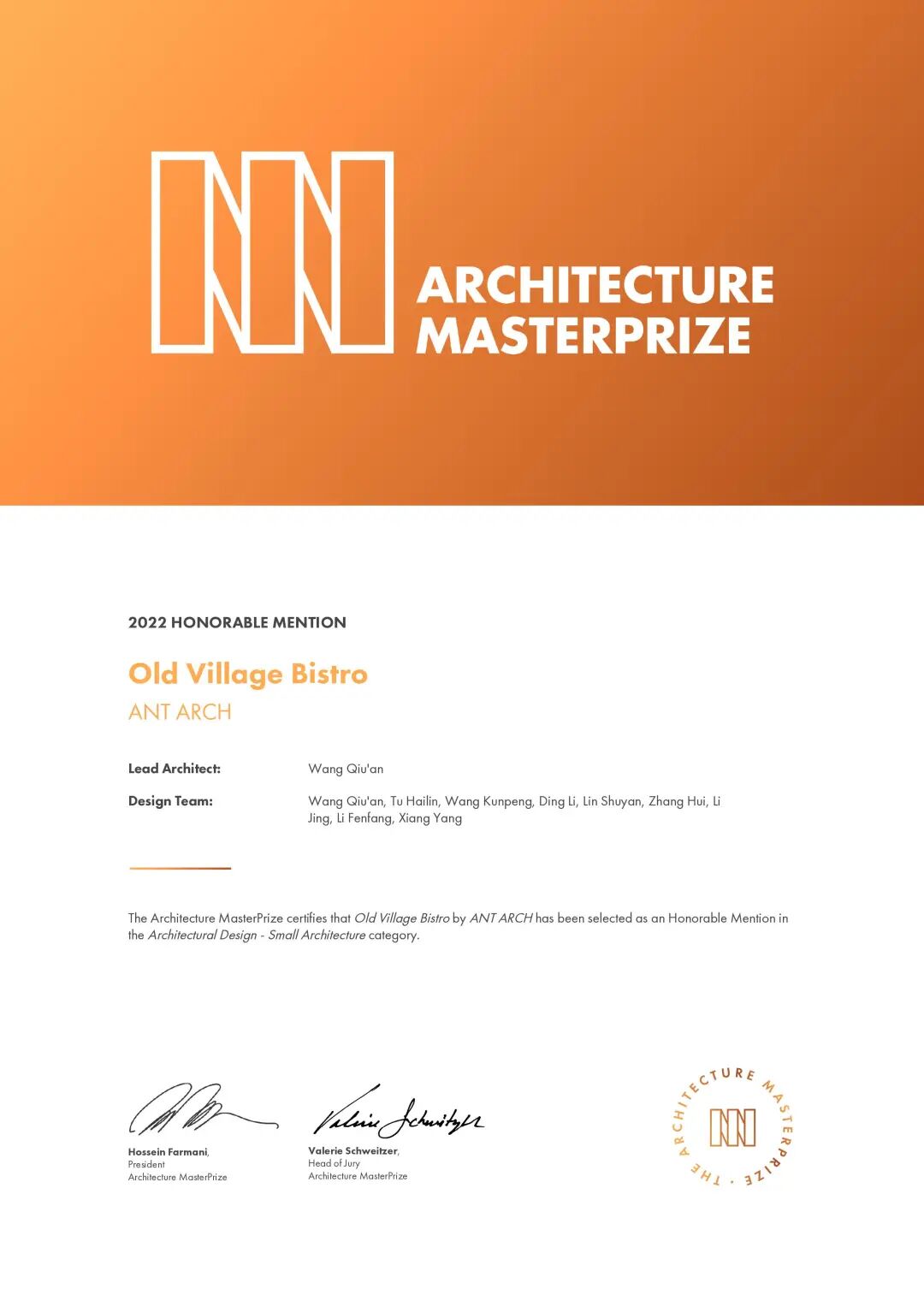 美国建筑大师奖(The Architecture MasterPrize)由Farmani集团创办,该集团成立于1985年,多年来一直是全球艺术、建筑、设计奖项的领导性机构,致力于发掘这些领域的杰出人才,授予奖励并提供教育和人脉资源。