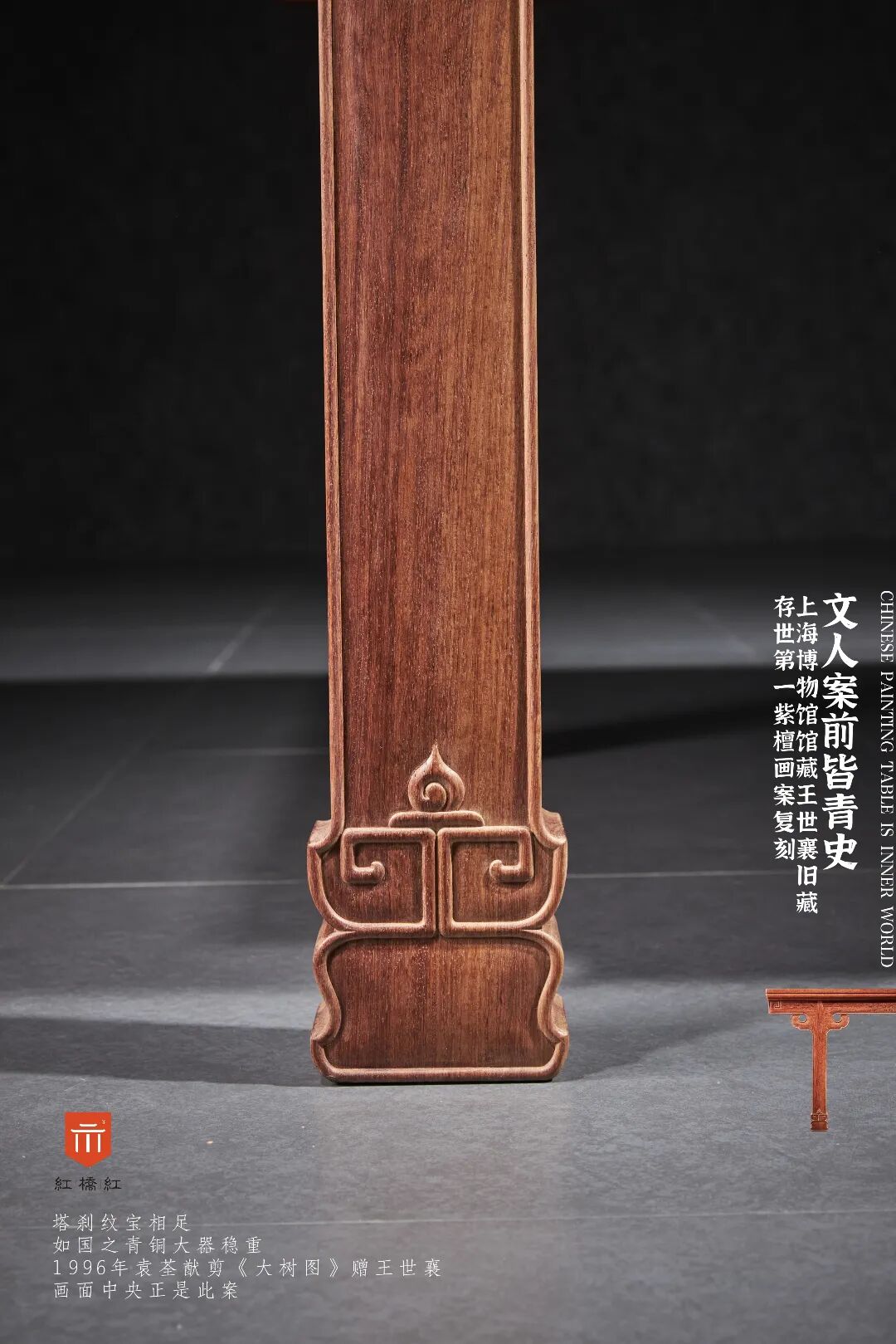 昔张叔未藏有墨林棐几、周公瑕紫檀坐具......王世襄全安以八十元入,得之。先生爱喜之至,秉其学识,研究备至,后捐至上博,谓“天下第一紫檀大案”,为上博镇馆之宝也。