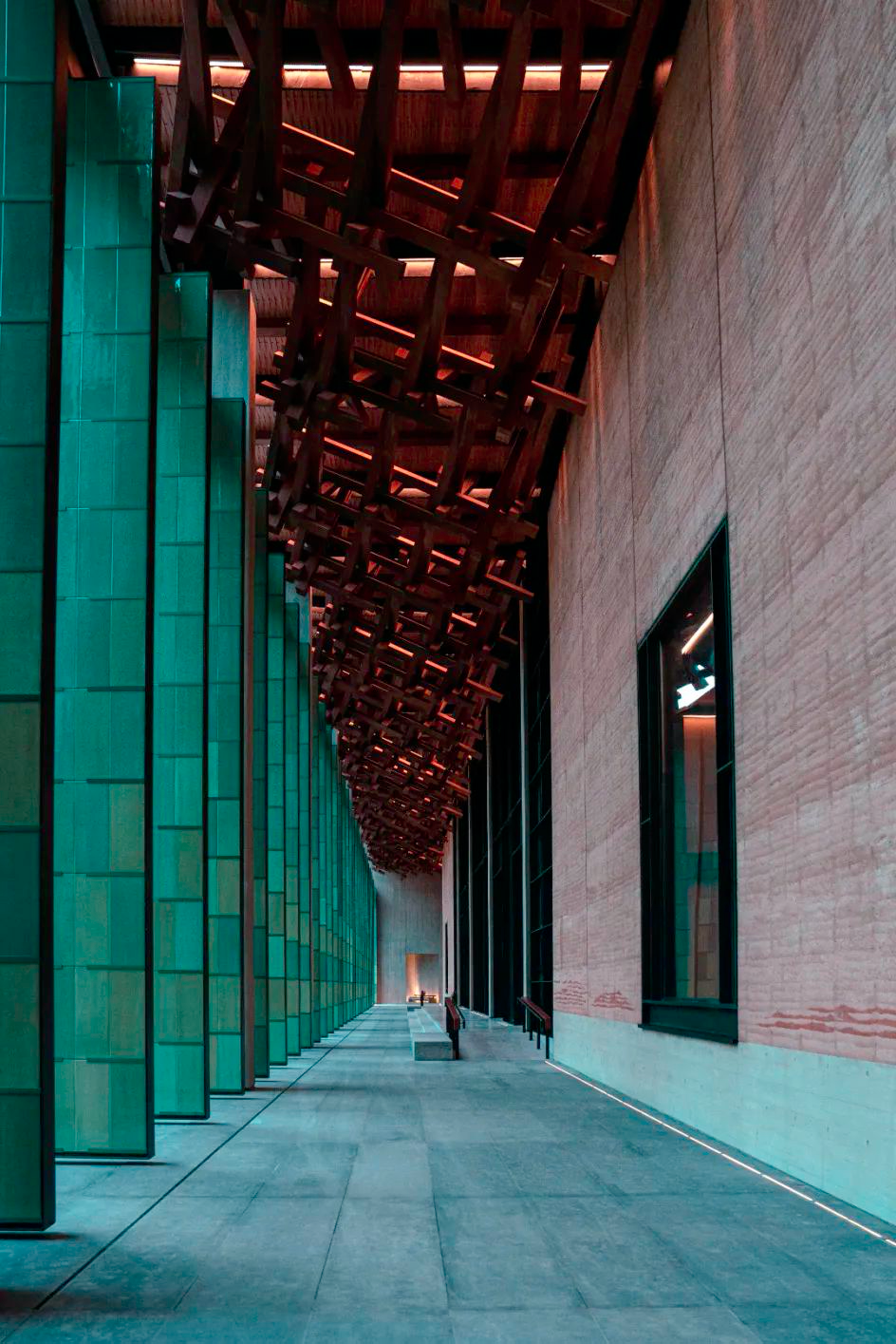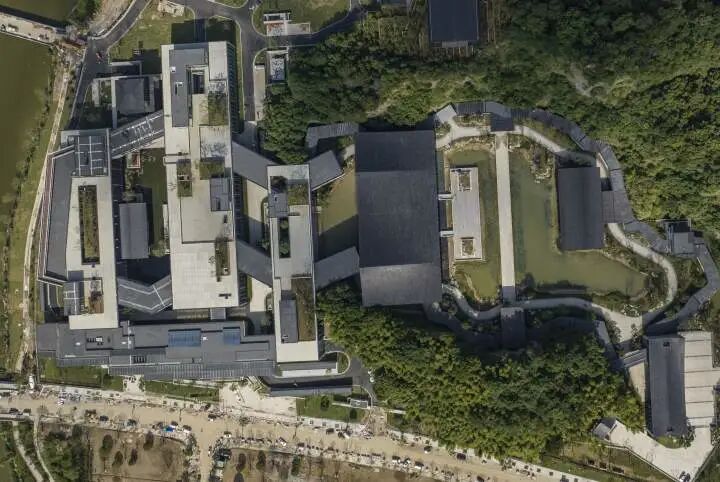 王澍便取国画山水“高远、深远、平远”中的“平远”,以破解对于限高的要求。四座紧密相连的建筑,以平远法压低建筑高度,展现园林中的层次感。