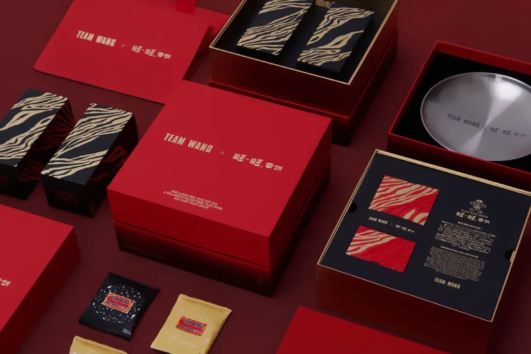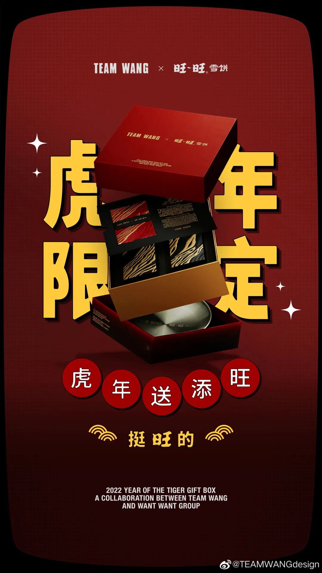 前不久,王嘉尔自创品牌TEAM WANG design联合旺旺集团,推出了虎年限定“添旺雪饼礼盒”,愿虎年限定给大家添旺、带来好运气。这个联名礼盒的创意理念来自于王嘉尔对的童年回忆,而与以往的包装风格不同,这款礼盒以红金和黑金为主,烫金品名印刻于版面中心‘内盒害设计有霸气的虎纹式样,呼应新年主题,简单高级。