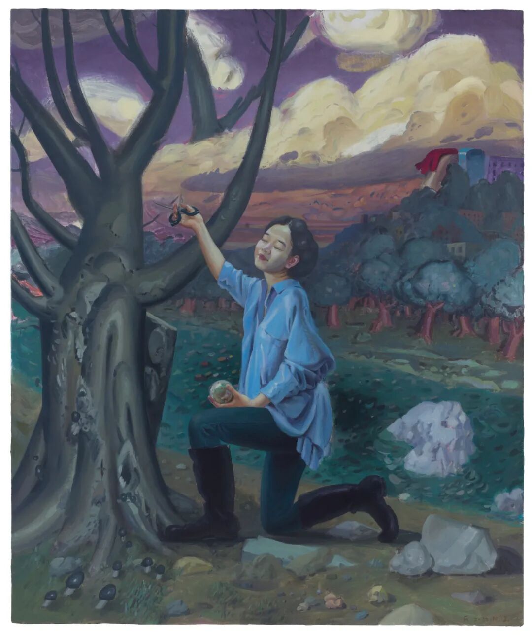 古树下的吴小可 布面油画 180×150㎝_2022