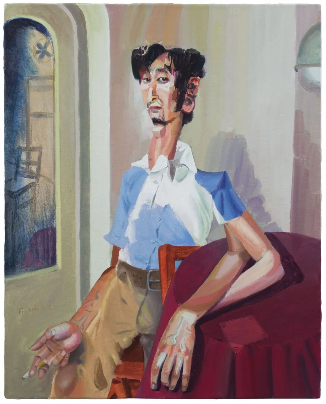 靠着衣柜的吴小可 布面油画 60×50cm_2022