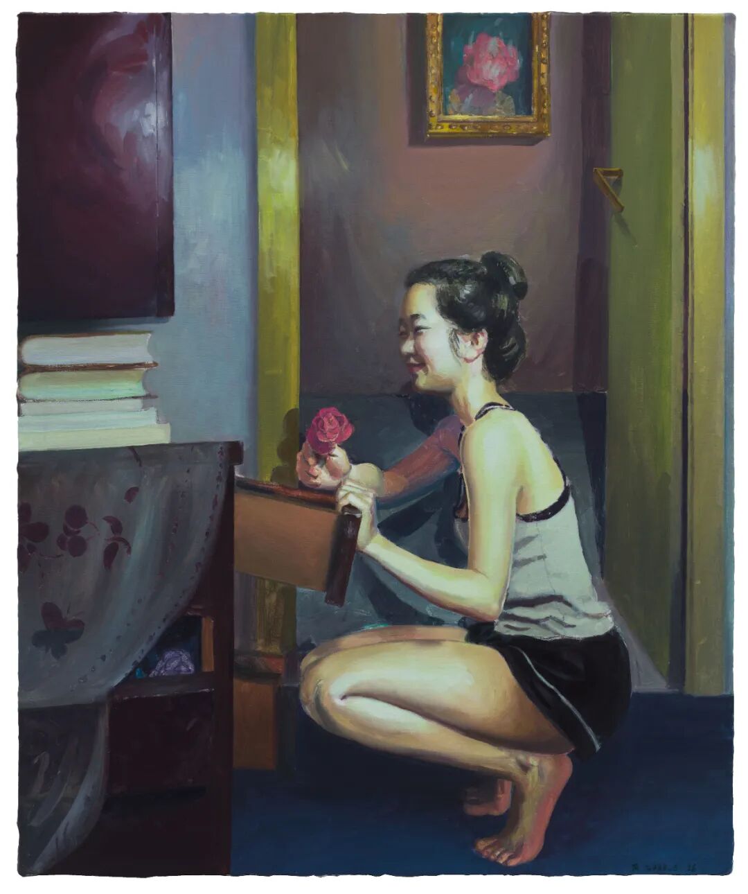 拿玫瑰的吴小可 布面油画 120×100cm_2022