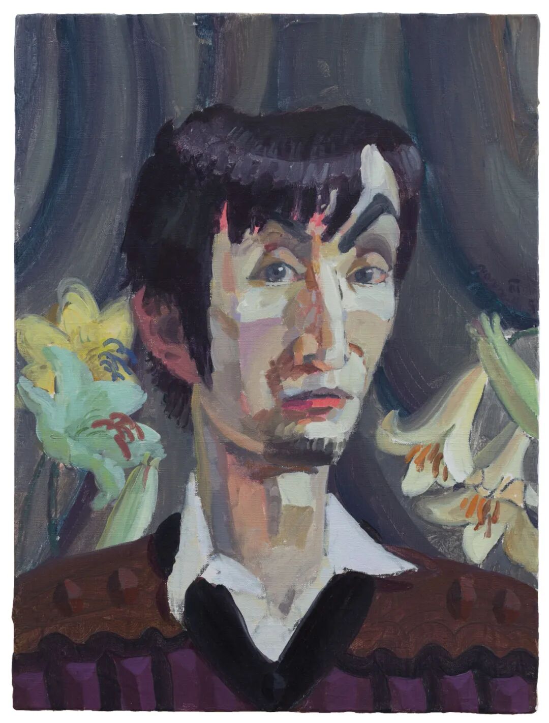 百合之间的洁夫像 布面油画 40×30cm_2022