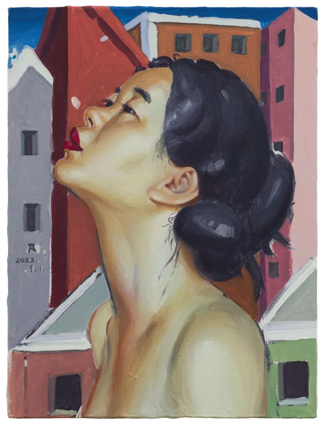 扎发髻的吴小可 布面油画 40×30cm_2022