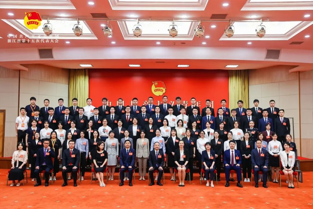 7月24日,共青团浙江省第十五次代表大会在杭州圆满完成各项议程后闭幕。闭幕式前,省委副书记黄建发对新当选的团省委委员、候补委员和新一届常委班子表示祝贺,并合影留念。