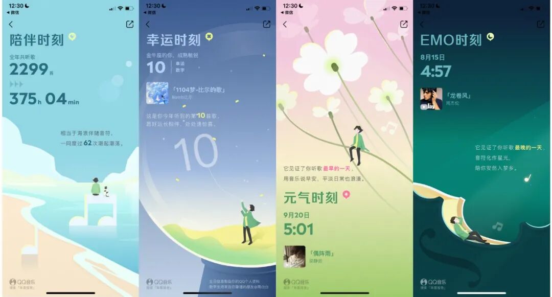 相比而言,我更喜欢QQ音乐的小清新风格,只是文案不够那么抓人,有点强压“时刻”的概念。关于这次的设计分析,相信大家应该也在网上看到挺多的了,我这里只是想简单分享下我自己的听歌报告和思考。