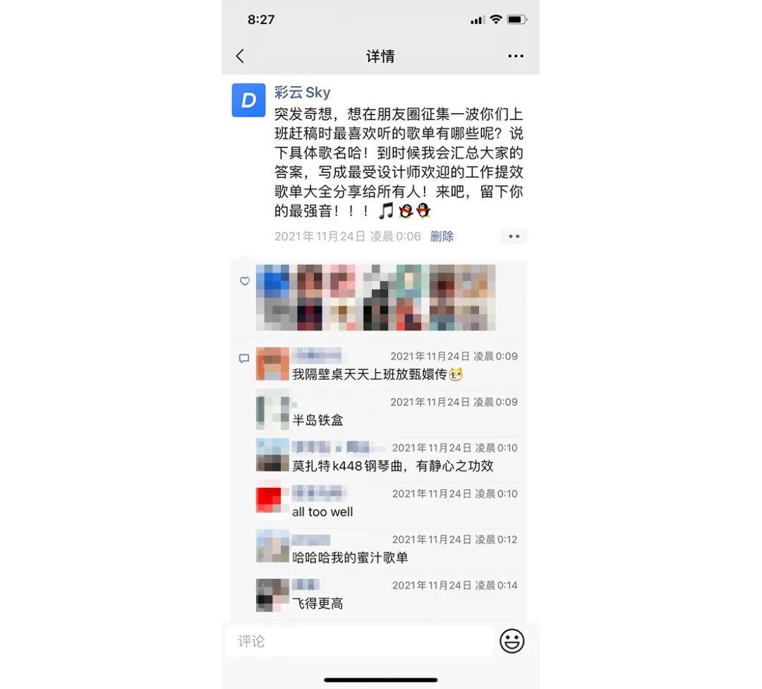 有天晚上,当我看完工作听歌的科普文章后,突发奇想,想在朋友圈收集一波设计师们平时搬砖摸鱼最爱听的一些歌单,然后汇总下来分享给大家,感受一下音乐带给我们的快乐。