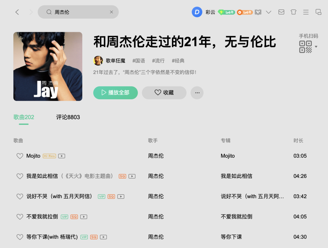 给大家看看我的年度歌单,现在基本上只有杰伦的歌可以让我反复听了,哎,老了。