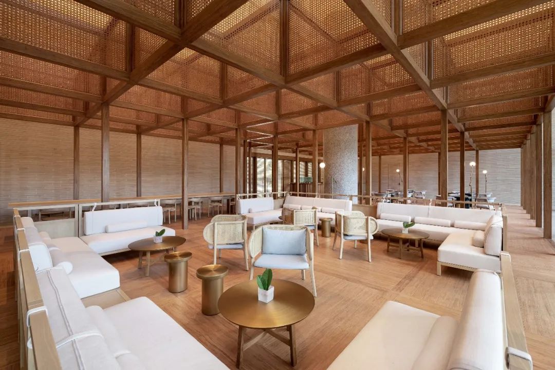 法国哲学家安托万·德·埃克苏佩里 (Antoine de Exupéry) 曾说:“不求不朽,而冀其意。”(We do not aspire to be eternal beings, we only hope things do not lose its meaning and purpose)如恩一直深受启发,并希望每个项目在历史语境中都能找到自己的意义和目的。此次也延续了一如既往的简约格调,明快自然,并带有更强的休闲感。 海南黎族历史悠久的非物质文化遗产——藤竹编,在酒店中被大面积使用,配以精致的黄铜、陶土砖、水磨石等材料,凸显了三亚鲜明的热带特色,既自然质朴又热烈奔放。