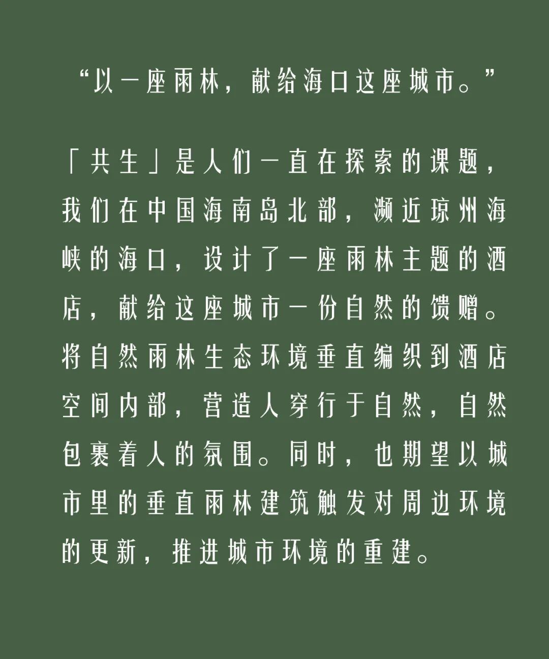 在旅途和雨林的相逢之处,在自然秘境之中,我们打造海口万华江东麓岛酒店,结合建筑体引入自然雨林,与竖向空间充分编织交融,让雨林成为款待到访者的主人,为向往已久的休闲度假生活赋予主题,将本土的体验与雨林的热情展现得淋漓尽致,成为旅居途中绝佳的栖居目的地。