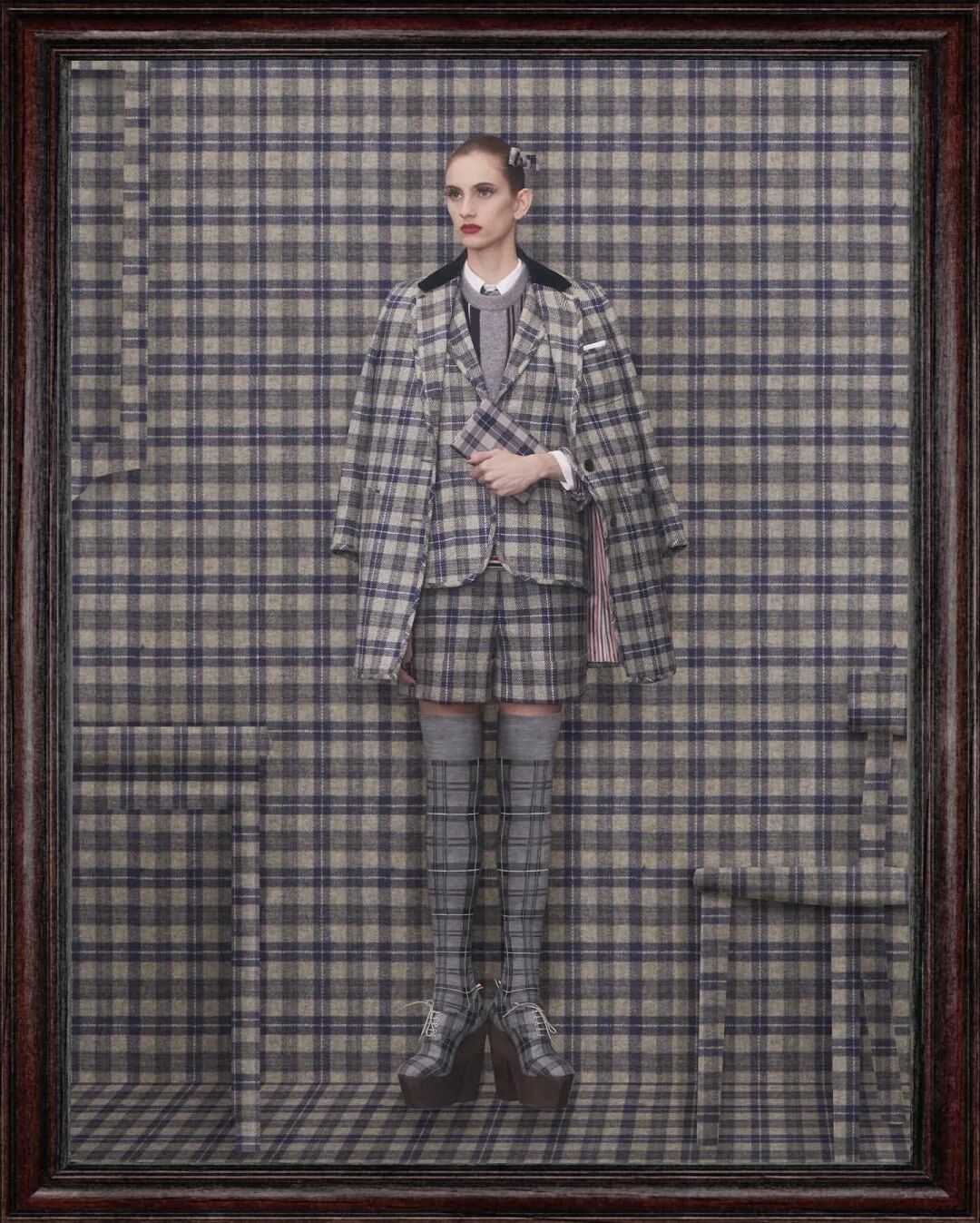 其实Thom Browne是一个十分懂得讲美国故事的设计师,你能在他的设计中看到许多来自美国的元素,荒诞的外表下实用主义的款式都让人在真实与想象之中摆渡。