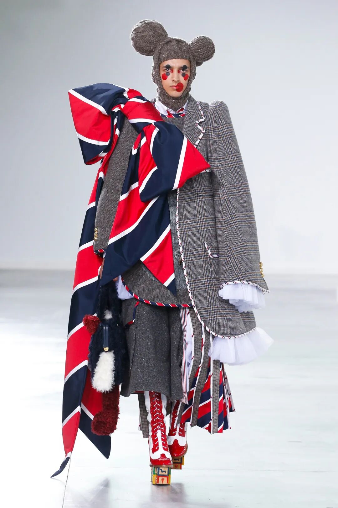 Thom Browne在探寻着凌乱的生活乐趣,戏剧性的创作手法与创造性的廓形相互呼应着,可能你会感受到堆满玩具的世界有一丝荒诞,但这并不能阻碍你对于生活的热情。